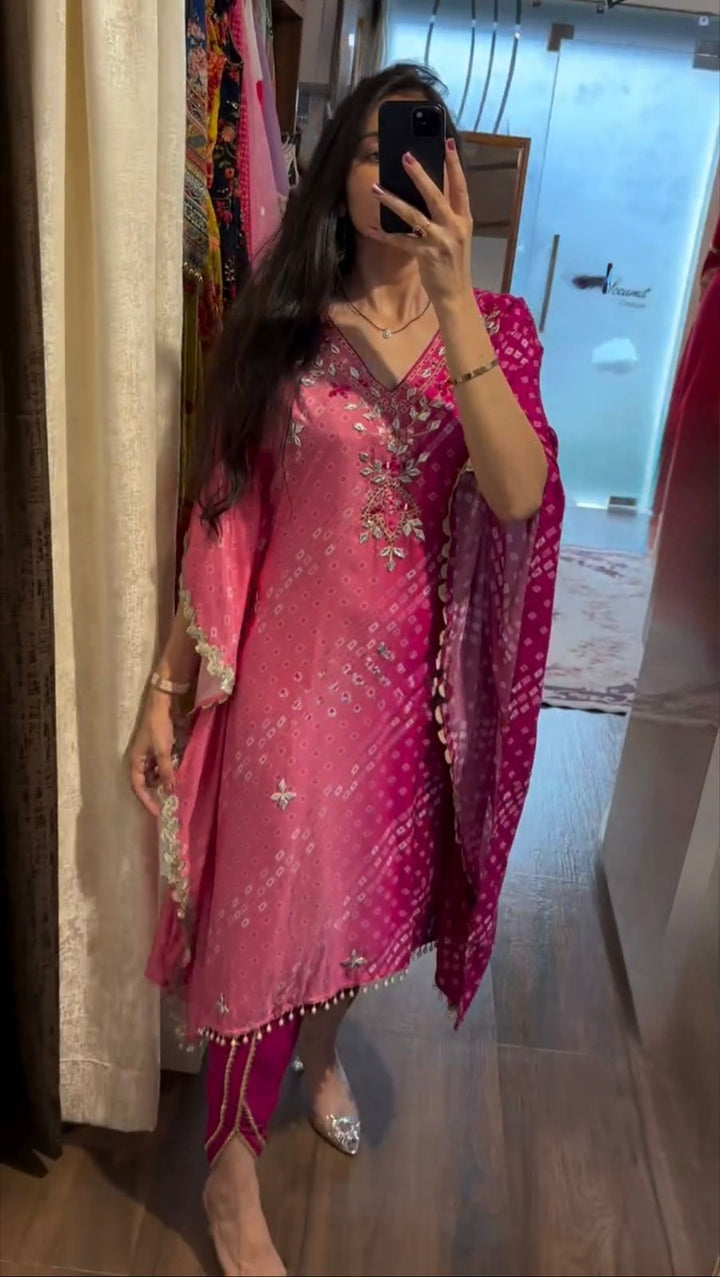 Pattern:- double shade kaftan with gota detailing with tulip pant.
