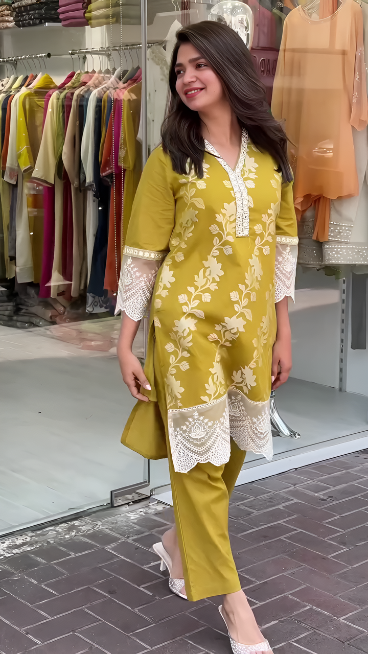 Anvi foil printed perrot cord set for women
