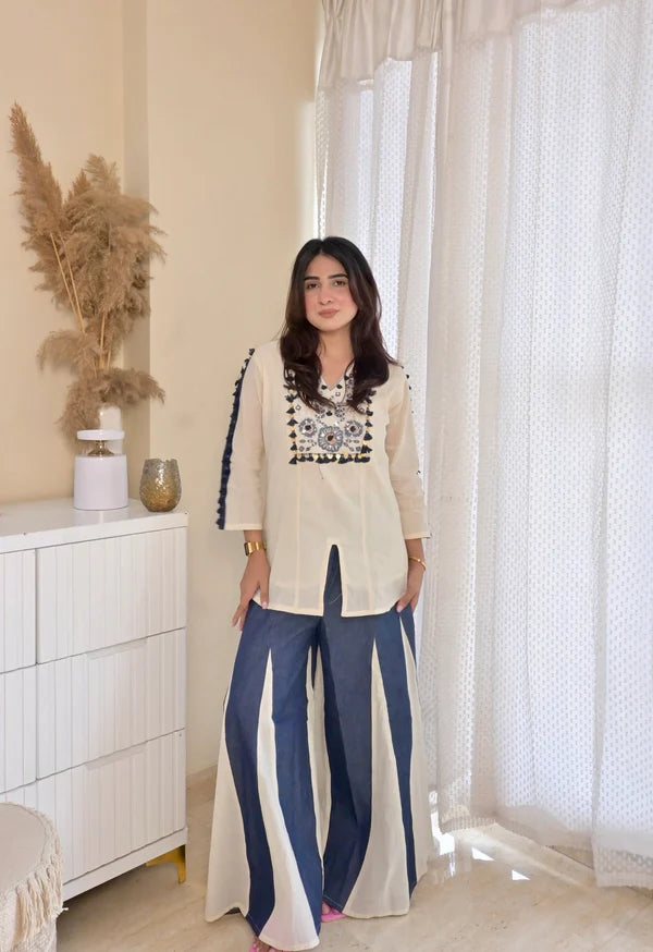 Pant Fabric:- Kali pant with flex cotton and denim fabric (most trending combination)