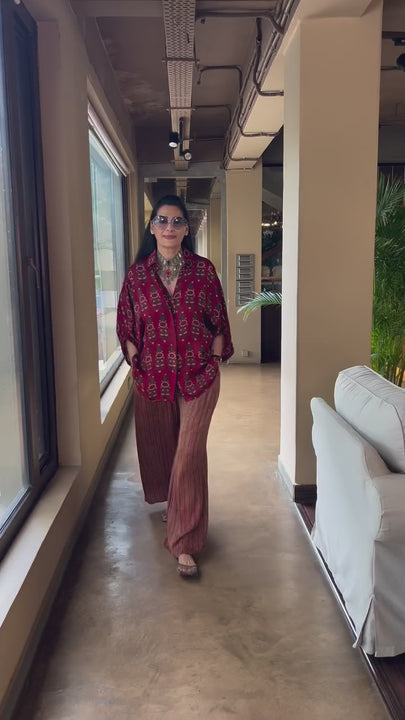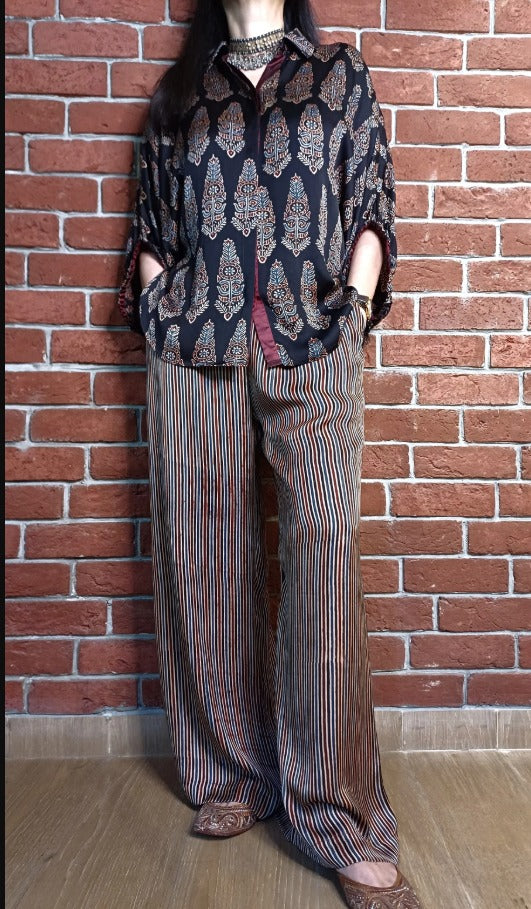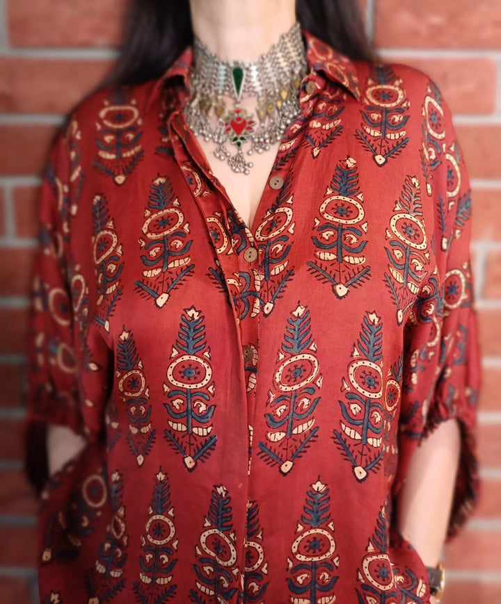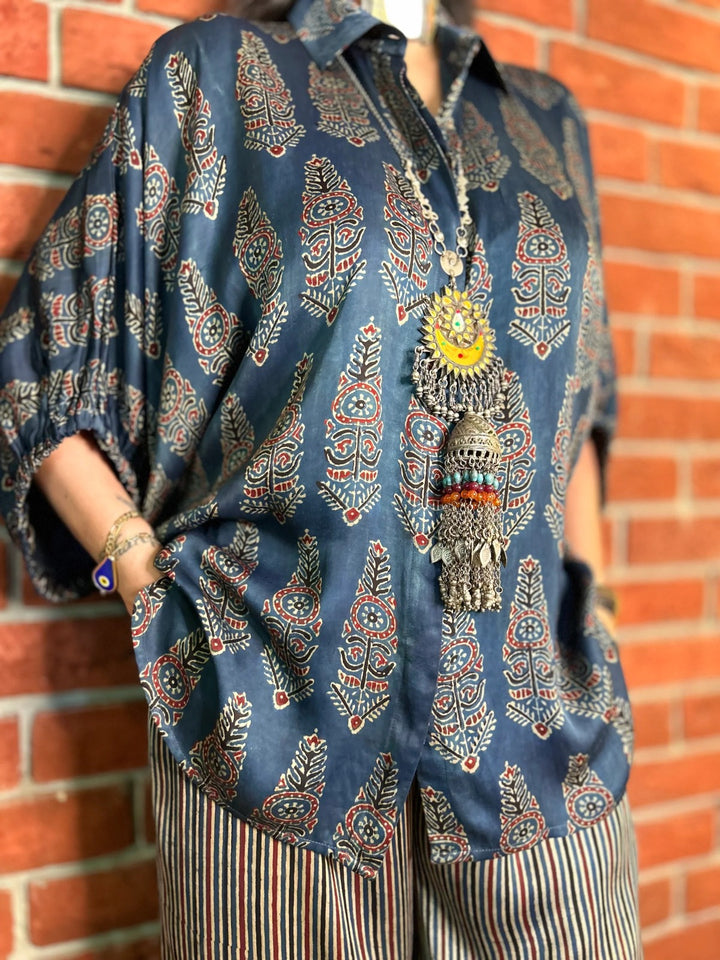 Taana Ajrakh Print Kaftan shirt cord-set for women